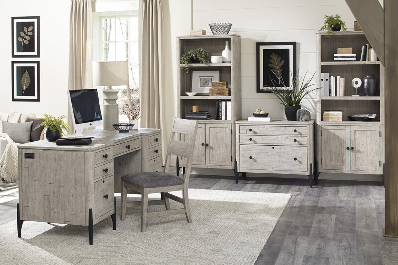 The contrast between the lightly textured parchment finish and matte black metal hardware provides a clean, contemporary look and timeless style.