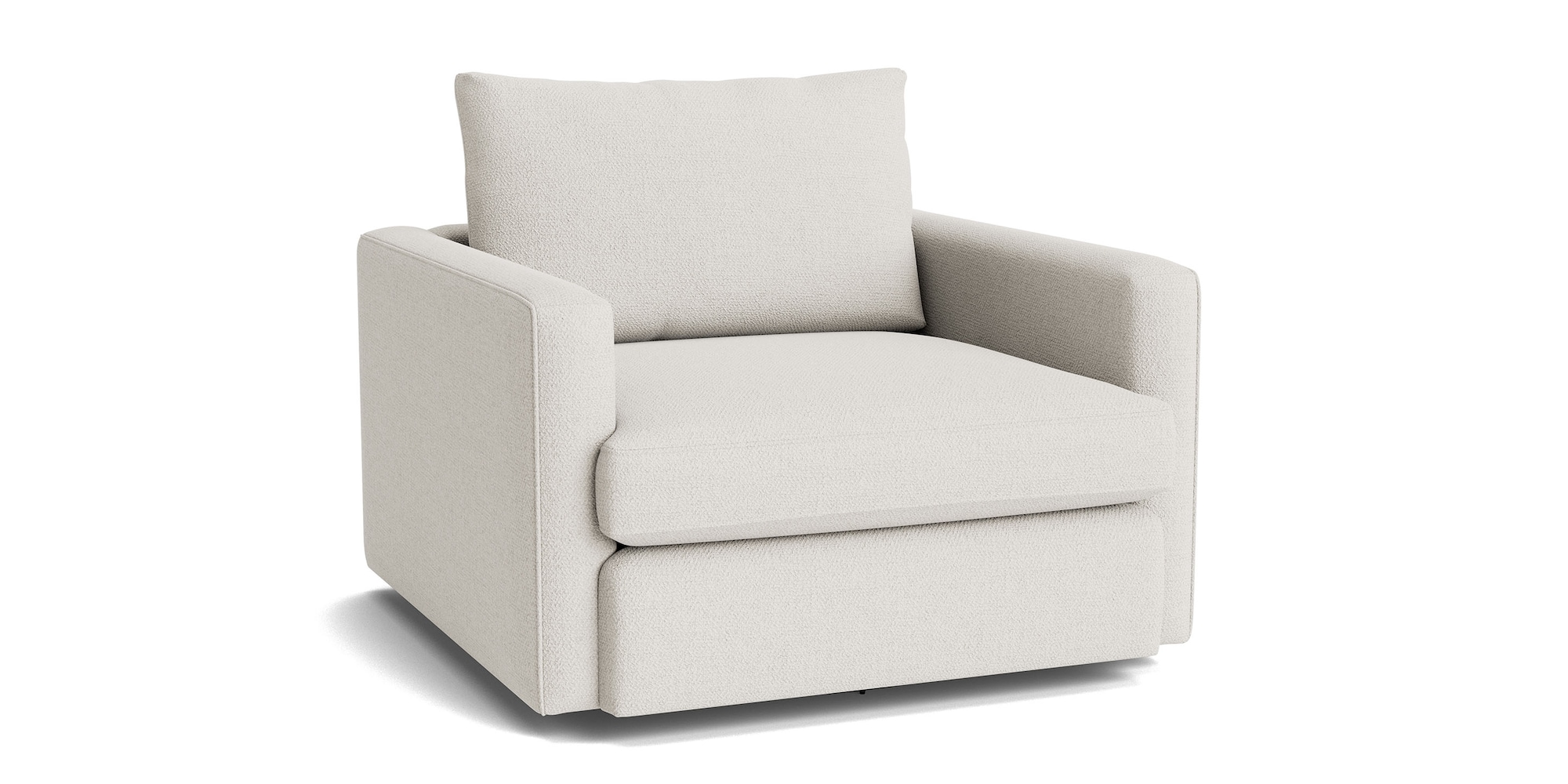 Put a chic spin on your favorite room with the Allure Swivel Chair. This wide, deep-seated chair offers more than its eponymous Allure – its middle name is Relaxation! The secret to its swinging style is a concealed swivel mechanism that lets you pivot to wherever the action is happening. A loose, knife back cushion and sleek track arms make this the perfect contemporary chair for a place in your living room, your office, or even the corner of your bedroom. Dress it in popular Alabaster or Dove fabric, or personalize it with a custom fabric option to fit your design plan.
