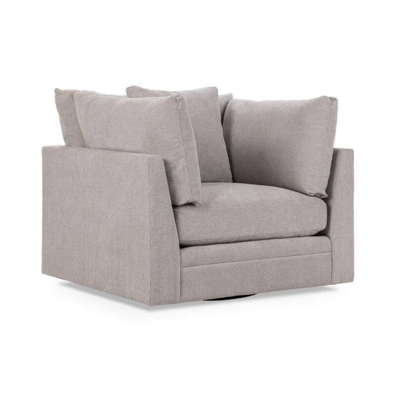 The Audrey Swivel Chair combines modern sophistication with unparalleled comfort. Featuring an oversized design upholstered in soft, neutral fabric, it offers a plush, sink-in feel with cushions filled with a luxurious feather-and-down blend. The 360-degree swivel base adds functionality, making it perfect for living rooms, reading nooks, or cozy corners. The Audrey Swivel Chair is a stylish and versatile addition to any space, bringing California casual elegance to your home.