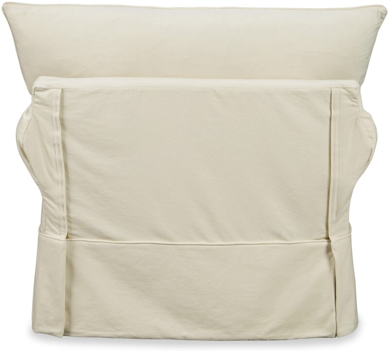 Simplicity and plush comfort are the reasons for this chair’s mass appeal. Featuring a true removeable slipcover, that fits snugly with Velcro attachments in key areas, it can be ordered in any of our fabrics (including a few that are machine washable!) It features a loose bed pillow back and a super soft Blend Down seat cushion for enhanced comfort. Sock arms and a relaxed waterfall skirt compete the familiar look of this casual and versatile piece. You will love coming home to this fresh and inviting look. Also available are the matching sofa, loveseat, ottoman, and sleeper sofa. Also available without a slipcover- see style 736410SS.