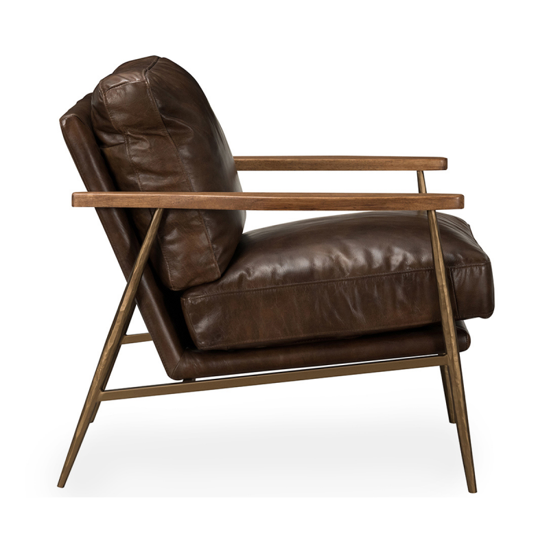 The Christopher Club Chair exudes a modern, industrial charm with its sleek metal frame and plush top-grain leather cushions. Designed for both comfort and style, it features a minimalist silhouette and generously padded seating that invites relaxation. Perfect for living rooms, reading nooks, or office spaces, this chair adds a touch of sophistication and a contemporary edge to any interior.