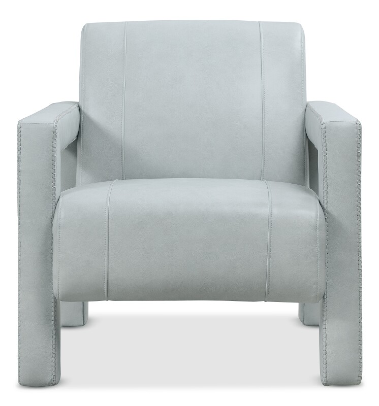The Covette Accent Chair in Amani Arctic Blue is a modern masterpiece, featuring a fully upholstered open arm frame with ladder stitch detailing. Upholstered in semi-aniline top-grain leather, this chair offers both comfort and a bold style statement for contemporary living rooms or offices.
