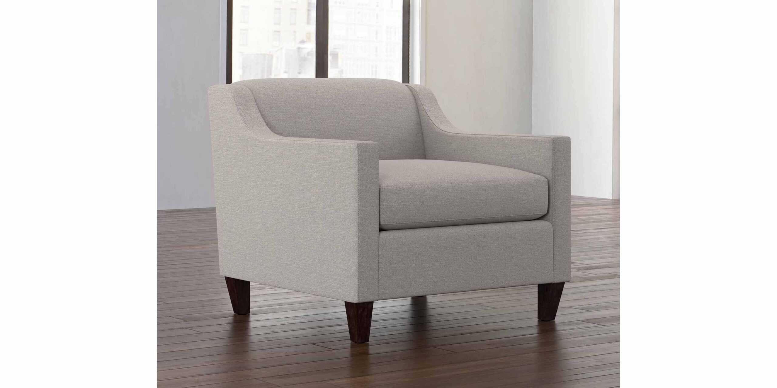 A low modern back and clean slope arm accent the traditional tight back of this chair. Lightness is added to the crisp lines of this item with tall slender legs and even better, it’s quite relaxing to lean back into!