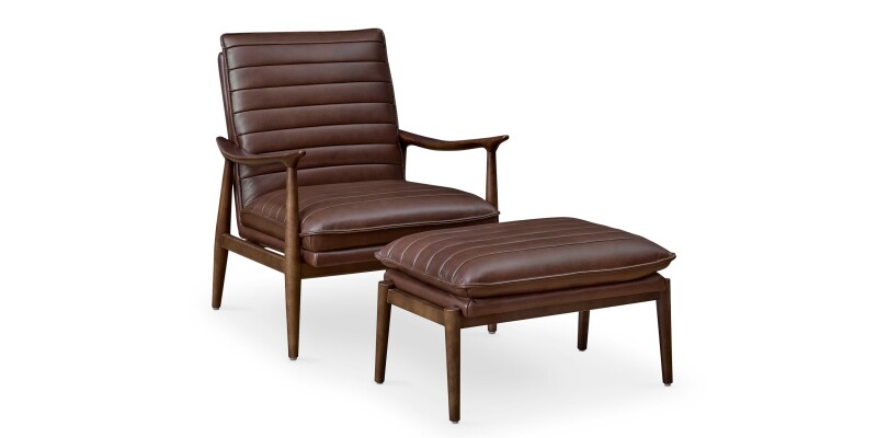 Claim the retro-cool Ellis Chair for your personal statement of luxe comfort. With an open silhouette and contoured frame crafted from solid birch, the Ellis Chair is more than an accent chair…it carries a lifestyle impact. Beautiful top grain leather, semi-aniline dyed and protected, cradles you in temperate comfort whether seated fireside or elbowed-up to a sunlit nook. Choose from either matte Mushroom or glossy Brown leather to add a tad of Scandinavian-inspired style to your room. Also, be sure to add an Ellis Ottoman for extended comfort.