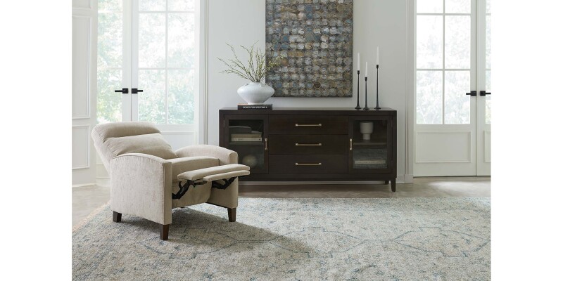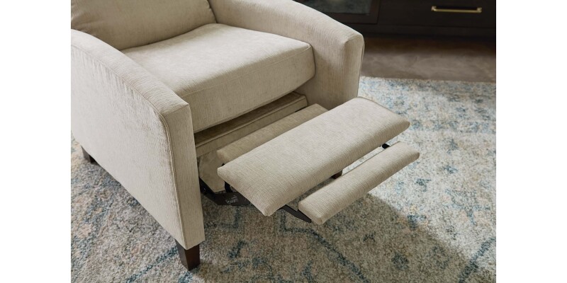 With a channeled headrest and tapered wood legs, the Emmett Track Arm Lay Flat Manual Recliner strikes a chic transitional pose for your modern living room. Hidden within its stylish, accent-chair appearance is a most accommodating recliner’s heart (and mechanics). Style the Emmett in your preferred designer fabric, cushion the seat to your comfort level, and choose a finish for its legs. The Emmett recliner is also available at either standard or tall back height, with a choice of manual push back or power mechanism to adjust your recline.