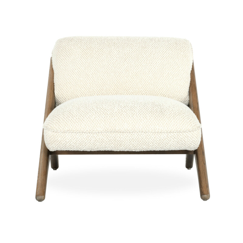 Designed to embrace, the Georgia Upholstered Accent Chair offers a seamless fusion of sculptural form and cloud-like comfort. Its arched wooden frame creates a striking foundation, while the plush ivory upholstery invites you to sink in and unwind.