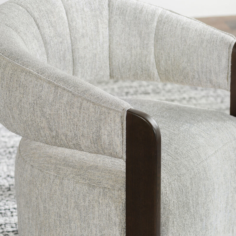 The James Swivel Accent Chair in Glacier Gray boucle fabric offers a modern yet cozy touch to your space. Upholstered in soft, textured boucle, its glacier gray tone exudes understated elegance. The smooth swivel base ensures effortless movement, making it as functional as it is stylish. Perfect for lounging or conversation, the James chair combines comfort and sophistication seamlessly.