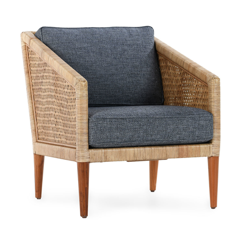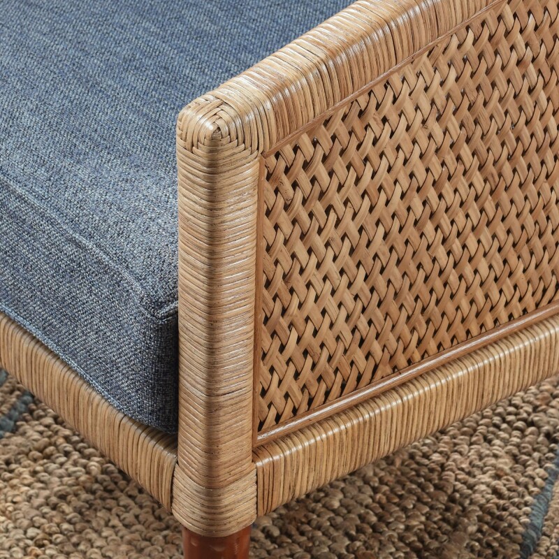 The Kaitlin Accent Chair combines natural materials with modern design for a chic, laid-back aesthetic. Crafted with a sturdy angular frame, this chair features a blend of wicker and rattan, offering texture and durability. Removable cushions provide added comfort and easy maintenance, making the Kaitlin a versatile and stylish addition to any living space.