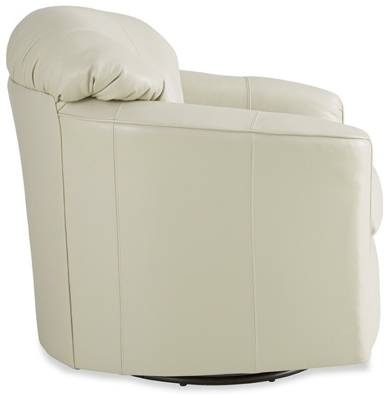 Wrap-around comfort and a shallow seat depth make this the most comfortable leather swivel glider we’ve ever made. The padded back is specifically designed to snuggle you in softness and the Blend Down cushion offers the perfect seat. If you are shorter in stature, you will truly appreciate the scale of this chair! Also available as a swivel chair- style L040910BDSC.