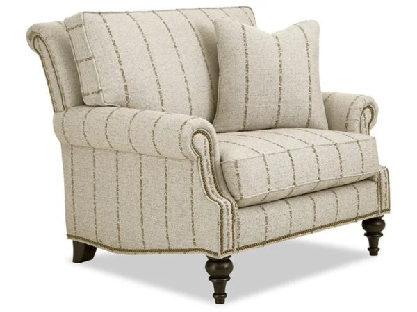 Understated and elegant, this swivel chair is beauty defined. It features slender sloping arms that taper from back to front and is finished with a pleated detail on the face. French seamed overall with a knife-edge bed-pillow style back pillow. Blend Down seat cushion.