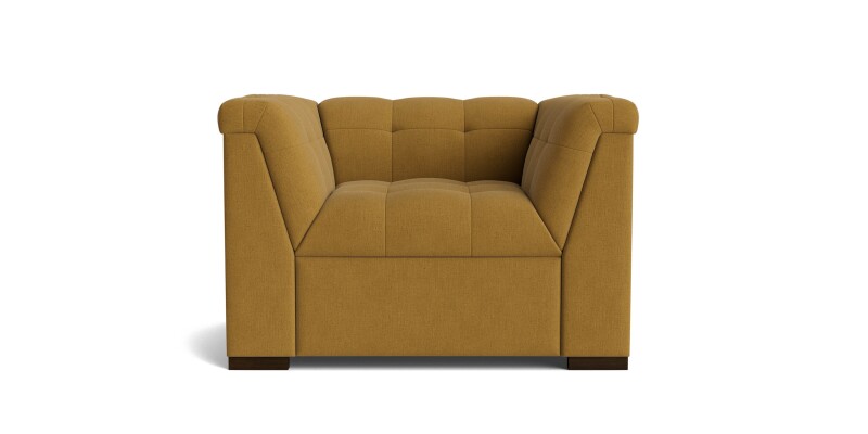 Modern tuxedo-style accent chair with wraparound comfort, clean lines, and plush biscuit tufting. Low, even profile anchors spaces; customizable in fabric or leather.