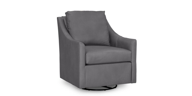 An angular shape and deep arm curves give the Sloan Leather Slope Arm Swivel Glider Chair its chic, contemporary look, while its loose seat cushion and pillow back speak directly to your comfort. Enjoy its relaxing embrace as you swivel and sway in a chair that can belong anywhere you are – your reading nook, a nursery…and the living room, where you’ll likely need a pair so you can more easily share the best seat in the house. Choose a rich Bassett leather to dress your chair(s), knowing that the supple leather will warm to the personal patina of a much-loved chair. The Sloan is also available as a stationary chair with wood legs.