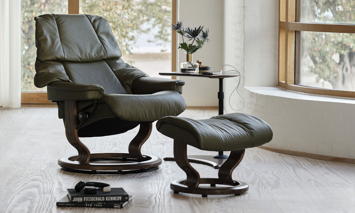 The over pads filled with soft foam and height-adjustable neck support has made the Stressless Reno one of our all-time favorites. It has become the symbol of what a great recliner should be: a comfortable, thought-through and durable piece of furniture that gives you that great Stressless experience year after year. The comfortable neckrest can be adjusted up to 4 inches to support users that need that extra bit of length.