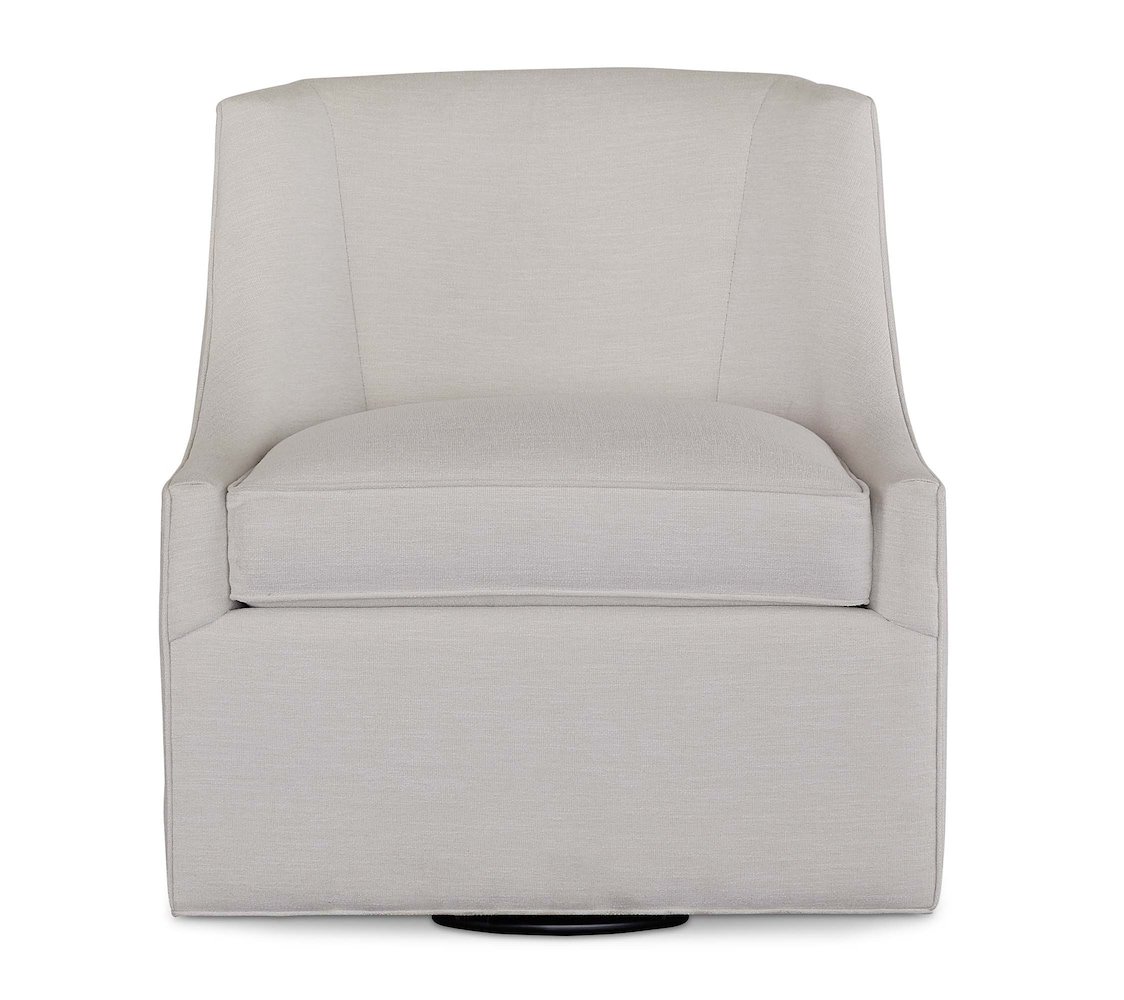 What a delight! The Sylva accent chair is a charming update to a classic rounded back style with the added benefit of a versatile swivel. Deep seating invites relaxing into long conversations and the sloping laid back arms are accented by a tasteful welt.