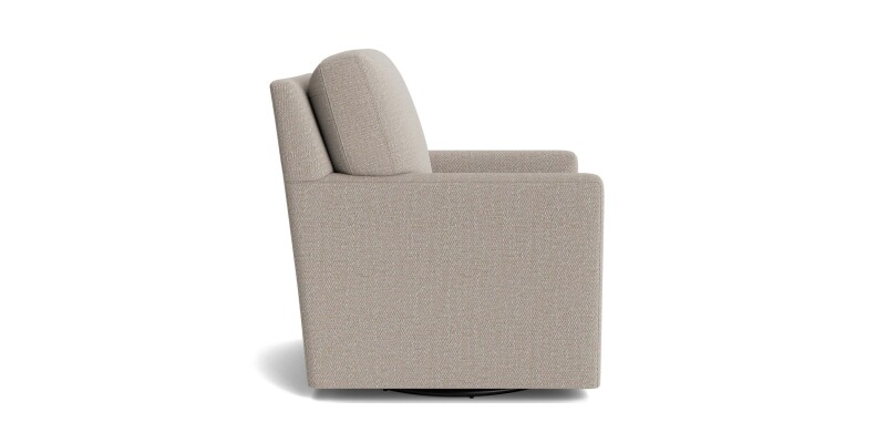 Everyone’s delight in the discovery that “it swivels!” is just one of the many seat-pleasing attributes of our Trent Track Arm Swivel Chair. From living room to office to bedroom, there’s no more relaxing way to add modern seating to any nook, niche or gathering. The attached back and box-stitched seat cushions on the Trent keep you centered and comfortable at all times. You can even choose from our designer fabrics to further personalize your easy seat. Consider ordering a pair for cozy tête-à-têtes…AND to ensure one of the best seats in the house will always be yours!