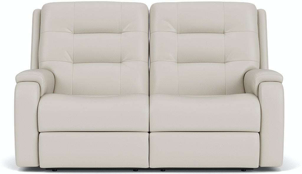 Keep comfort simple with the Arlo Reclining Loveseat, available in premium leather upholstery. With handles on either arm, both people can adjust the recline and find a position that’s ideal for relaxation. Enjoy the support of pull-tufted, triple-divide back cushions which bolster your head, neck and lower back. As you unwind, sink into the comfort of contoured seats with chaise pads that gently support your legs and rounded pad-over track arms that take pressure off the forearms. Our patented DualFlex Spring Systemâ„¢ ensures firmness and flexibility as you sit. To create a look that’s all your own, choose from more than 50 leather or leather match options that look elegant and are easy to clean.