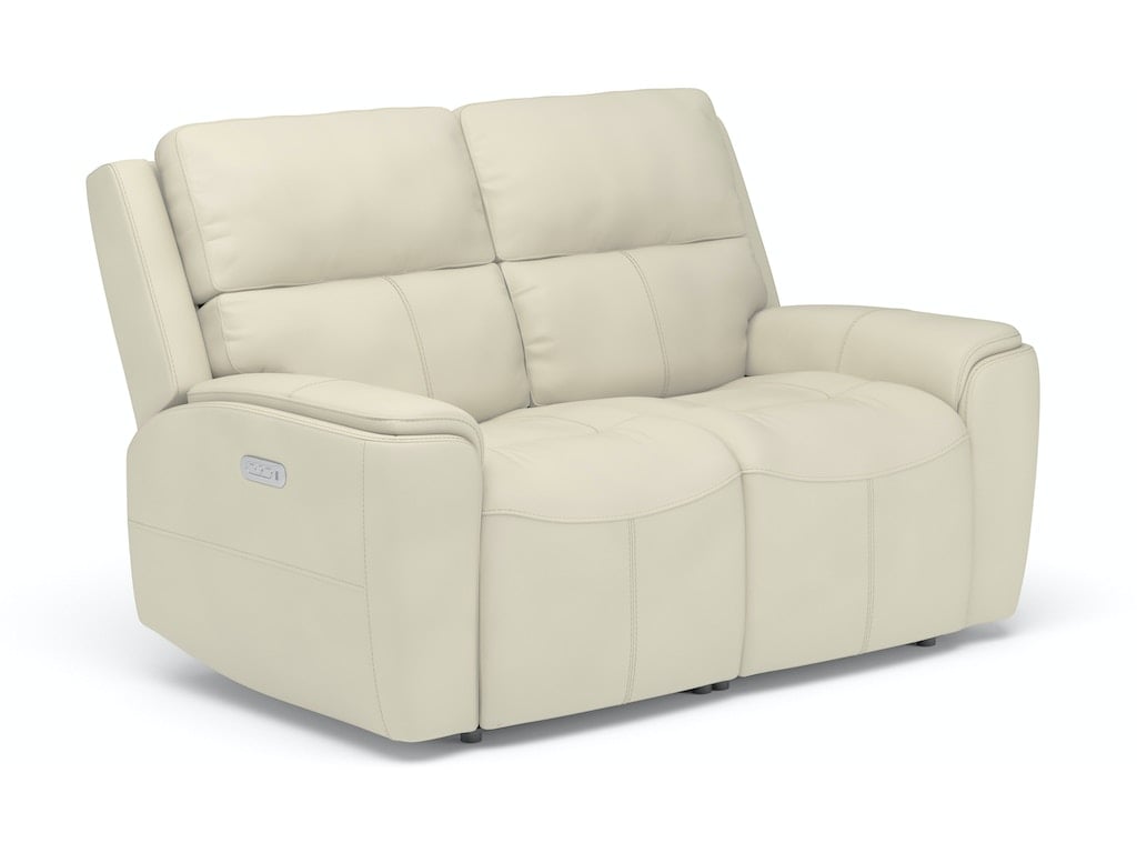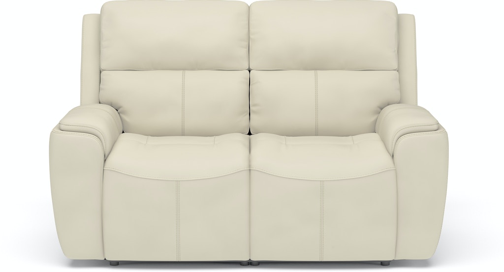 Enjoy comfort designed for two with the Ellis Power Reclining Loveseat with Power Headrests. Using a power control on the side of each arm, both people sitting can adjust the headrest and recline, making it easy to unwind while having a conversation or watching a show. Need to charge a device? The power controls include integrated USB charging ports that keep devices powered up and ready to use. Enjoy a comfortable sit with a contoured seat pad with waterfall chaise and divided back cushions with kidney support that reduce tension in your back. This superior support is reinforced by our patented Flexsteel DualFlex Spring Systemâ„¢, which ensures that the loveseat is built to last. Thoughtful design details, including shell track arms and durable heavy-thread top-stitching, give this loveseat an elevated look. And with two color options of our premium leather upholstery, you can choose a design that will enhance your decor.