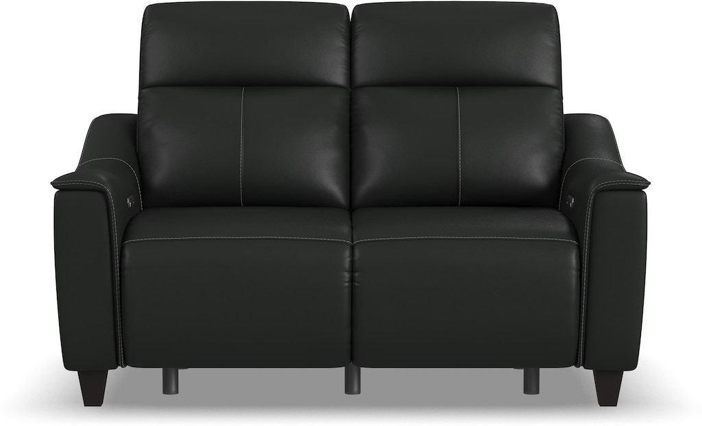 Alluring modern style merges with motion technology in the Walter power reclining loveseat with power headrests. Featuring thin, pad-over sloped track arms, square tapered legs, and flat seats, Walter mirrors the look of stationary furniture while providing all the comfort of motion seating. Relaxation for two can be fine-tuned with an adjustable recline, powered headrests and extended footrests, while high, divided backs support shoulders. Convenient built-in ports keep devices charged. Available in two colors of durable leather, the Walter power reclining loveseat is designed for lasting beauty.