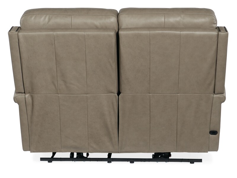 In a chic transitional, well-tailored design, the Vaughn Zero Gravity Loveseat with Power Headrest is offered in the finished top grain leather called Shattered Stone. Reclining at the touch of a button with a zero-gravity feature that gives you the feeling of being suspended in air for maximum comfort, the recliner has a bustle-style back and vintage gold nailhead trim. Includes USB port to charge your device while you relax.