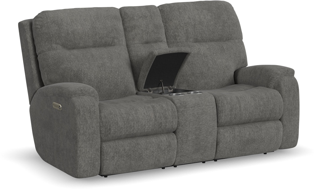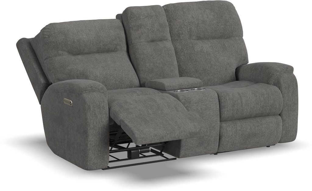 Combine beauty and effortless motion, with the Penn Power Reclining Loveseat with Console, Power Headrests and Lumbar. Using the power controls on either arm, each user can seamlessly adjust the recline setting independently. Power headrest and lumbar support lend customized comfort for your family’s individual needs. USB ports, with zero-draw technology, allow you to charge your devices with ease. The center console provides cup holders as well as additional storage for remotes and more. Crafted with our patented DualFlex Spring Systemâ„¢ Penn provides flexibility and firmness for years to come. Choose from hundreds of fabric options to create a unique look to suit any style. Whether you are settling in for a family movie night or just relaxing solo, feel fully supported by Penn.