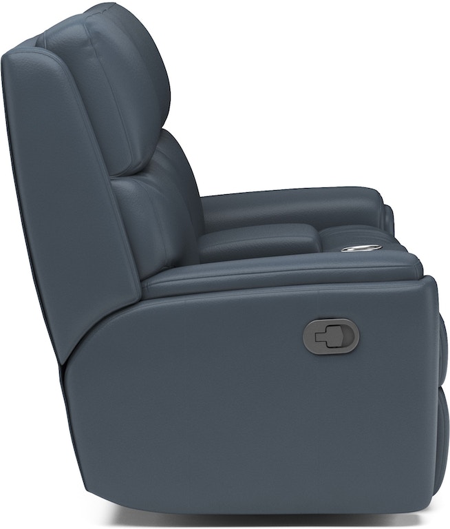 Enjoy the luxury of a leather recliner and the convenience of centralized storage with the Rio Reclining Loveseat. Keep magazines, remotes and other personal items close at hand with a console that includes cup holders for beverages. With a simple parachute release on either arm, both people can adjust the recline and find a position that’s ideal for relaxation. As you unwind, sink into the support of divided back cushions that bolster your neck, back and lower lumbar. Inset padded armrests take pressure off the forearms, while our patented Flexsteel DualFlex Spring Systemâ„¢ ensures firmness and flexibility as you sit. To create a look that’s all your own, choose from one of 50 options of our premium leather that is durable and looks elegant.