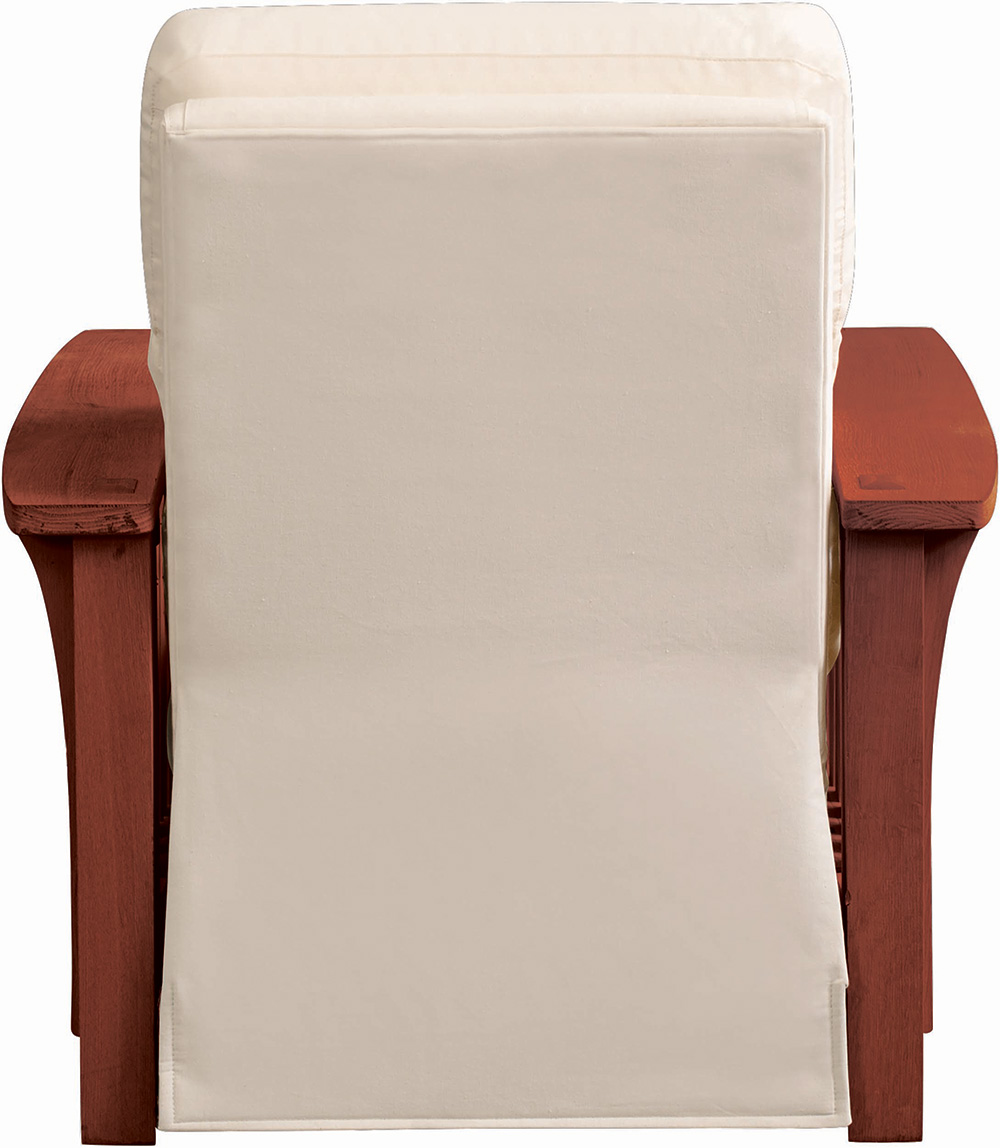 A piece that calls to mind William Morris, the leader and champion of the English Arts and Crafts Movement, this recliner features long graceful bowed arms supported by elongated corbels, as well as slatted sides and an adjustable back. Available in solid oak or cherry in your choice of fabric or leather.