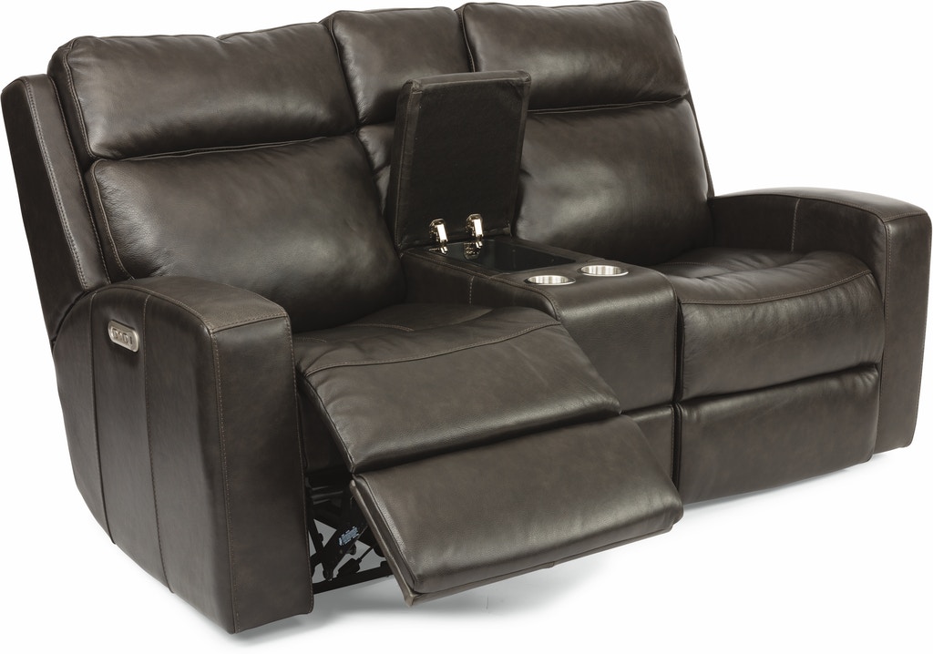 Perfect for gamers, movie enthusiasts, and more, the Cody Power Reclining Loveseat with Console and Power Headrests keeps you comfy and your snacks, remotes and beverages within easy reach. You and a companion can adjust your recline and headrests using convenient power controls on either side of the loveseat. Enjoy a wide range of motion thanks to our patented DualFlex Spring System. Features like the high-divide pillow pad backs, contoured arms and USB ports in the power controls will make you never want to leave your seat. If you spill, not to worry. We’ve upholstered the loveseat in a premium leather that will look great for years to come.