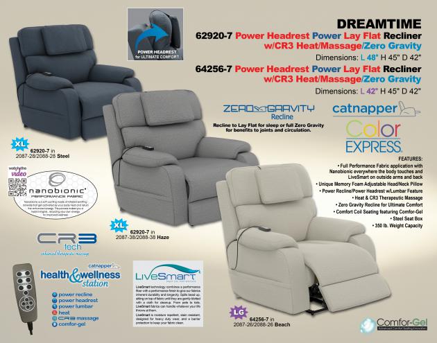 Dreamtime 2920 Power Headrest Power Lay Flat Recl w/CR3 Heat/Massage/Zero Gravity