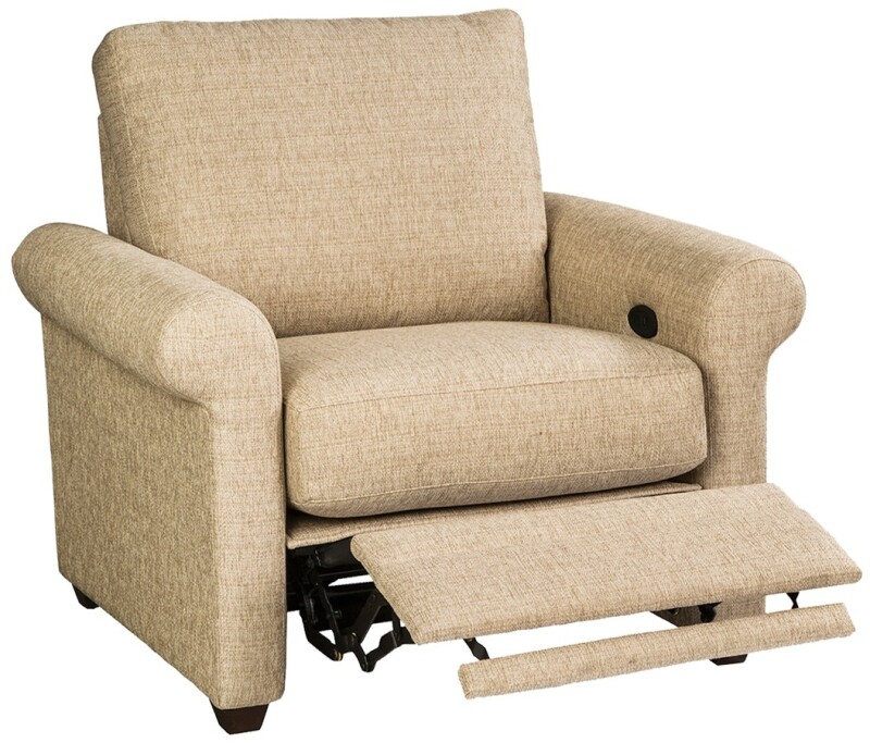 This power motion recliner is part of the Design Options F9 Series and is available with your choice of arm, back, and seam options. Recliner only requires 3” of wall clearance to fully recline. USB port is included next to the power motion control. For more information, see the Design Options tab under Collections on the home page.