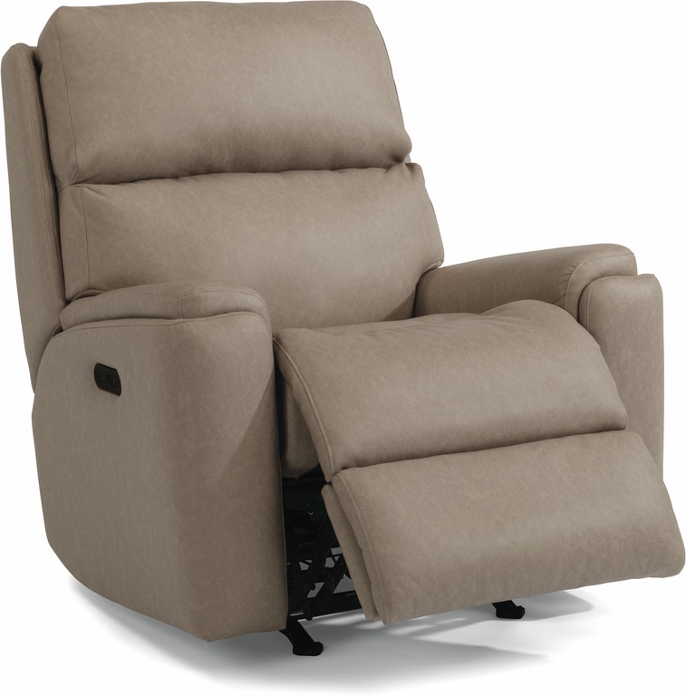 Settle in and enjoy the gentle soothing motion of the Rio Rocking Recliner with Power Headrests. In a seated position, this recliner features a comforting back and forth movement that’s ideal for lulling babies or taking naps. When you’re ready to recline, use the power control in the arm to independently adjust the recline and headrest and find the perfect angle for relaxation. You won’t need to get up to charge your phone, thanks to a convenient USB charging port in the power control. Plush divided back cushions support your neck, back and lower lumbar, while inset padded armrests cradle your forearms. Bolstered by our patented Flexsteel DualFlex Spring Systemâ„¢ that combines firmness with flexibility, this recliner is built to last for a lifetime of comfort. Choose from over 250 fabric options to make Rio your own.