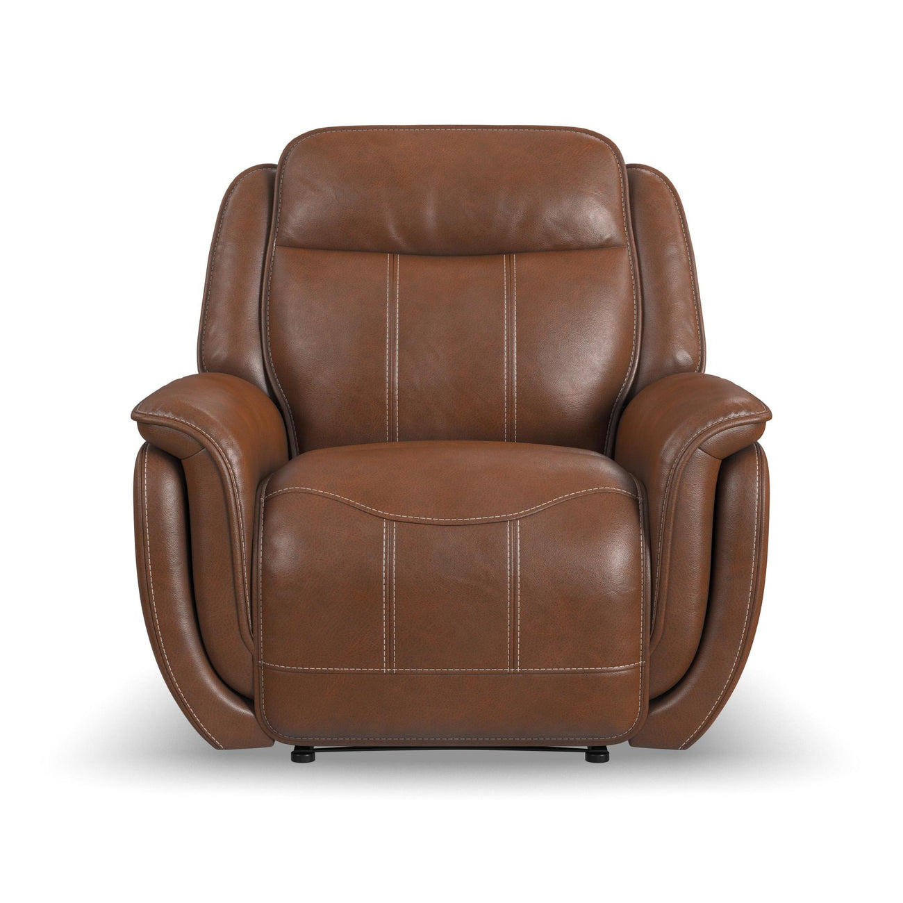 Envelop yourself in relaxation and style with the Swift power recliner, where indulgent comfort meets well-tailored design. Soft, layered padded arms and a wide seat of this hazelnut brown top-grain leather recliner are accentuated by a waterfall chaise to support effortless lounging, while the high-divided back ensures optimal support. Sweeping contrast stitching details and welt trim elevate the aesthetic.