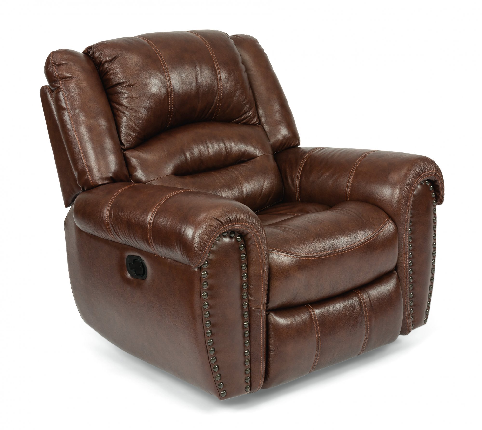 The Town collection surrounds you with a plush, automotive-inspired seat and arms for the ultimate comfort experience. Accented with nailhead trim, this recliner’s traditional style will bring added character to your space. The Blue Steel Spring ensures this piece is in it for the long-haul. The smooth release handle lets you change angles effortlessly from an upright to a fully reclined position. A high-density seat cushion provides a supportive seat for years to come. Town’s surrounding comfort and durability will make it a spot you’ll go to again and again.