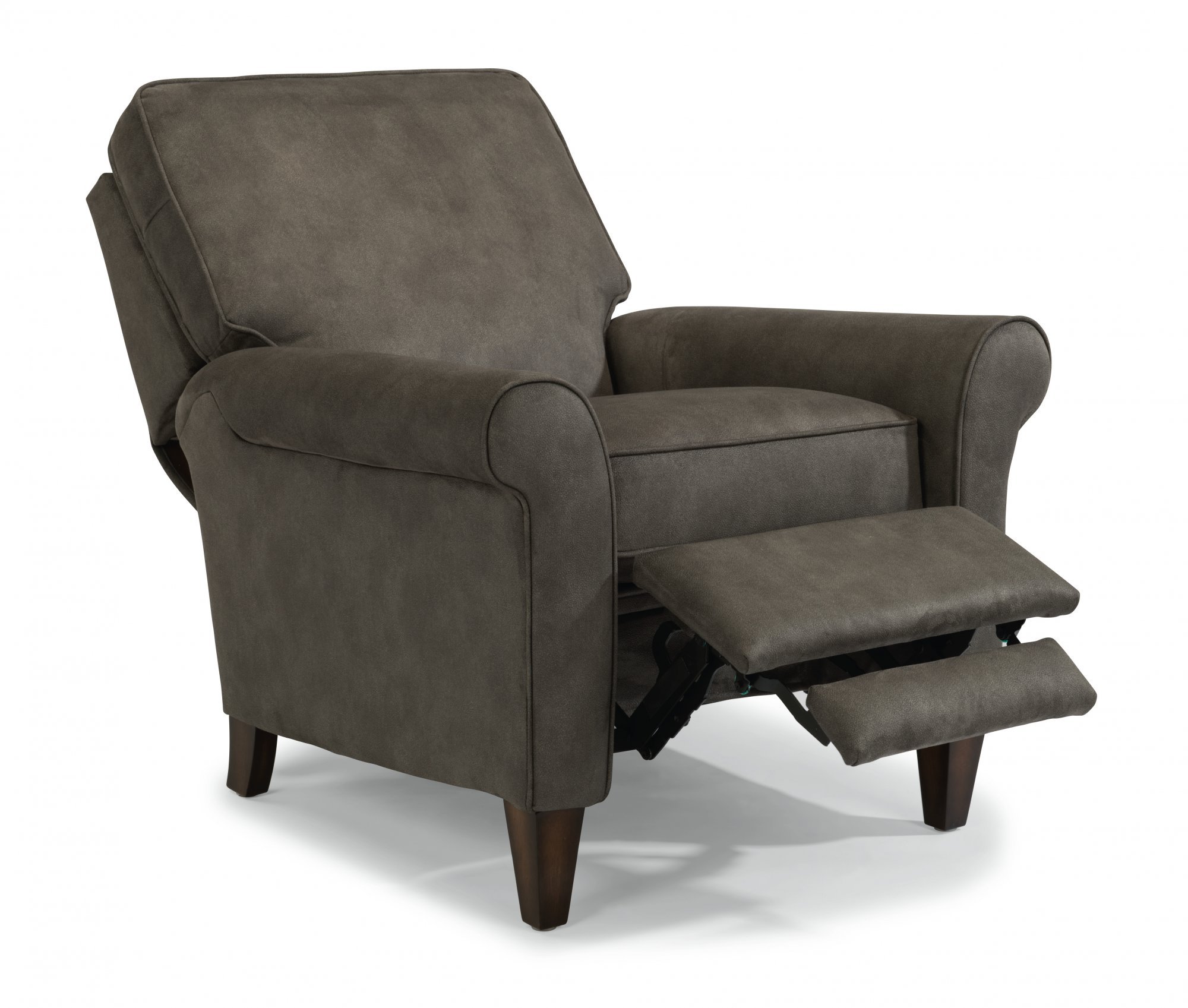 Lean back and look sophisticated in this Westside classic. Rolled arms and tapered wooden legs elevate an angled profile so you can sit back and relax elegantly. Soft boxed seat and back cushions paired with quality construction provide years of comfortable seating for you and your family. A smooth reclining mechanism lets you change angles effortlessly from an upright to a fully reclined position.