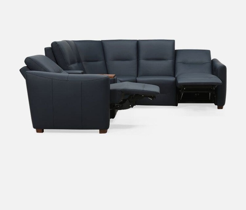 The Sanibel premium motion collection is designed with a slightly curved track arm and a decorative pull tuck detail on the seat and footrest. This innovative motion collection comes standard with triple motor power and offers our optional premium amenities package (app controls, heat, massage and parental lock-out). Plus, choose from classic walnut or sophisticated legs and wood top console. Palliser Recline app required to access recline function and additional features on armless pieces.