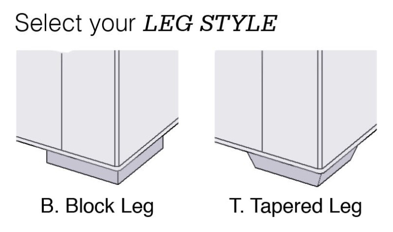 | trim | Standard welt trim. Contrasting welt available with an upcharge.Choice of Block Leg or Tapered Leg. |