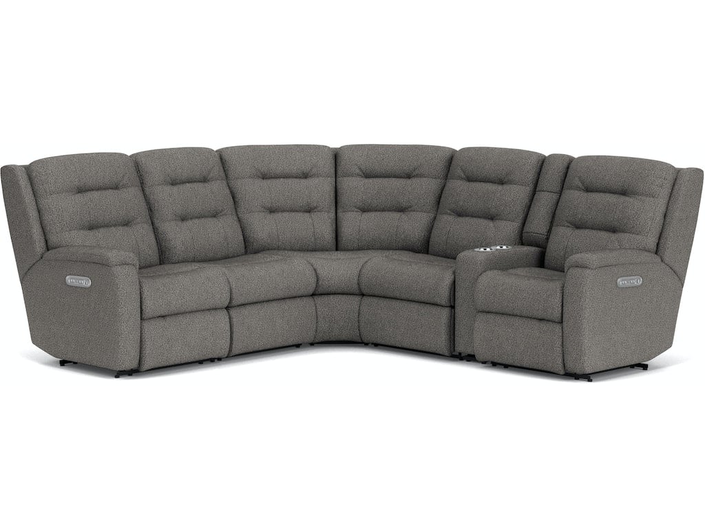 Get comfort you can personalize with the Arlo Reclining Sectional with Power Headrests. Using power controls with built-in USB charging ports in both arms, you can independently control the recline and headrests to find an angle that’s perfect for watching TV or taking a nap. Keep remotes and beverages handy with the convenient center console with cup holders and additional storage. You won’t have to sacrifice function for style, either. The sectional’s pull-tufted, triple-divide back cushions have a sleek, distinctive look and enough support to keep your back and neck comfy.