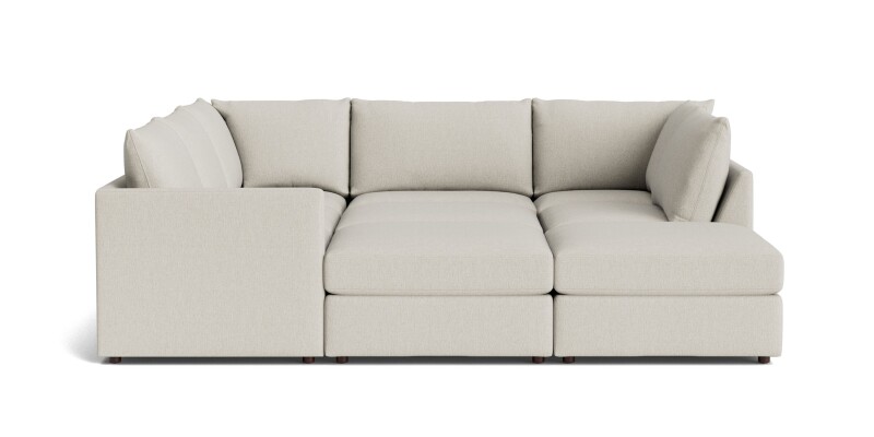 Invite extended family. Friends, too. The all-welcoming Beckham Pit Sectional is a modular sectional offering endless possibilities to be as large or small as needed. All pieces are top-stitched for durability, with weltless box seat cushions and loose knife edge back. Back and seat cushions are removable for easy cleaning. Wood legs are finished in walnut tone. Our best price fabrics are in Straw or Bone performance basket weave fabric and are in stock and ready to ship. Beckham can also be special ordered in any of our 600+ fabrics! Pillows are icing on the cake! We don’t want to assume your perfect pillow, so this piece does not come standard with accent pillows. We have lots of choices online to shop and your local design consultant would even be happy to guide you through designing your perfect custom pillow in store.
