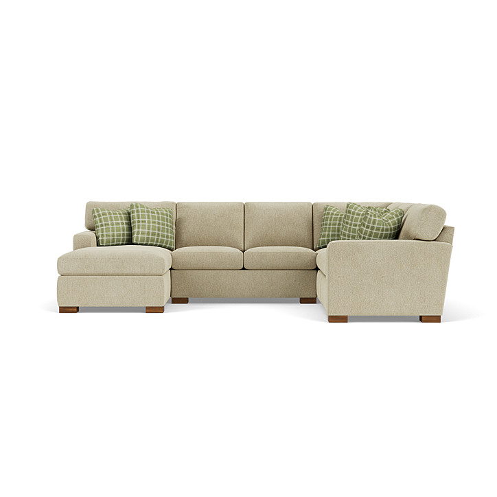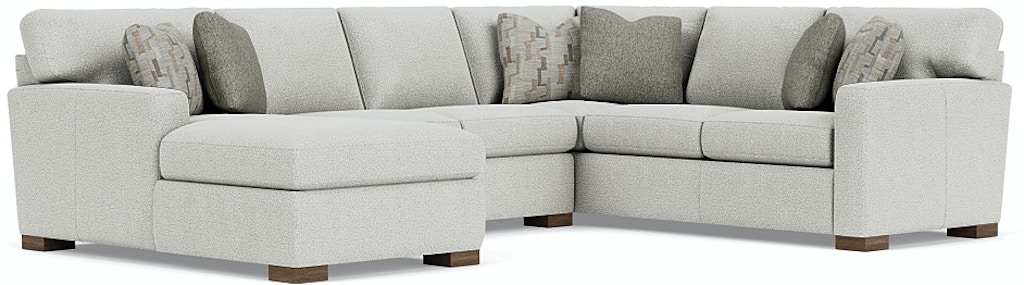 Bryant offers modern, clean lines that are contrasted by its softly padded arms and boxed seat cushions. The arms and seat cushions are detailed with single-needle top stitching, while the bold block legs add a solid finish to this design. Multiple seating options make the Bryant sectional ideal for relaxing with company.