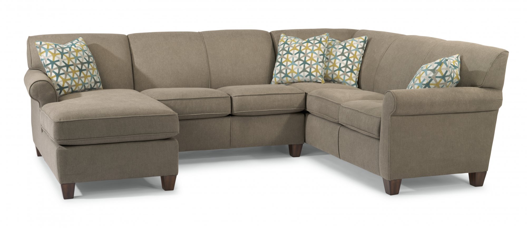Dana is current and stylish, yet simple enough to withstand the test of time. This modestly scaled style is a great option for small spaces. With a tightly padded back, tailored roll arms and tall tapered feet, Dana fits classic touches into a streamlined design that lends openness to any space. Multiple sectional components provide countless configurations to fit any room’s shape and scale