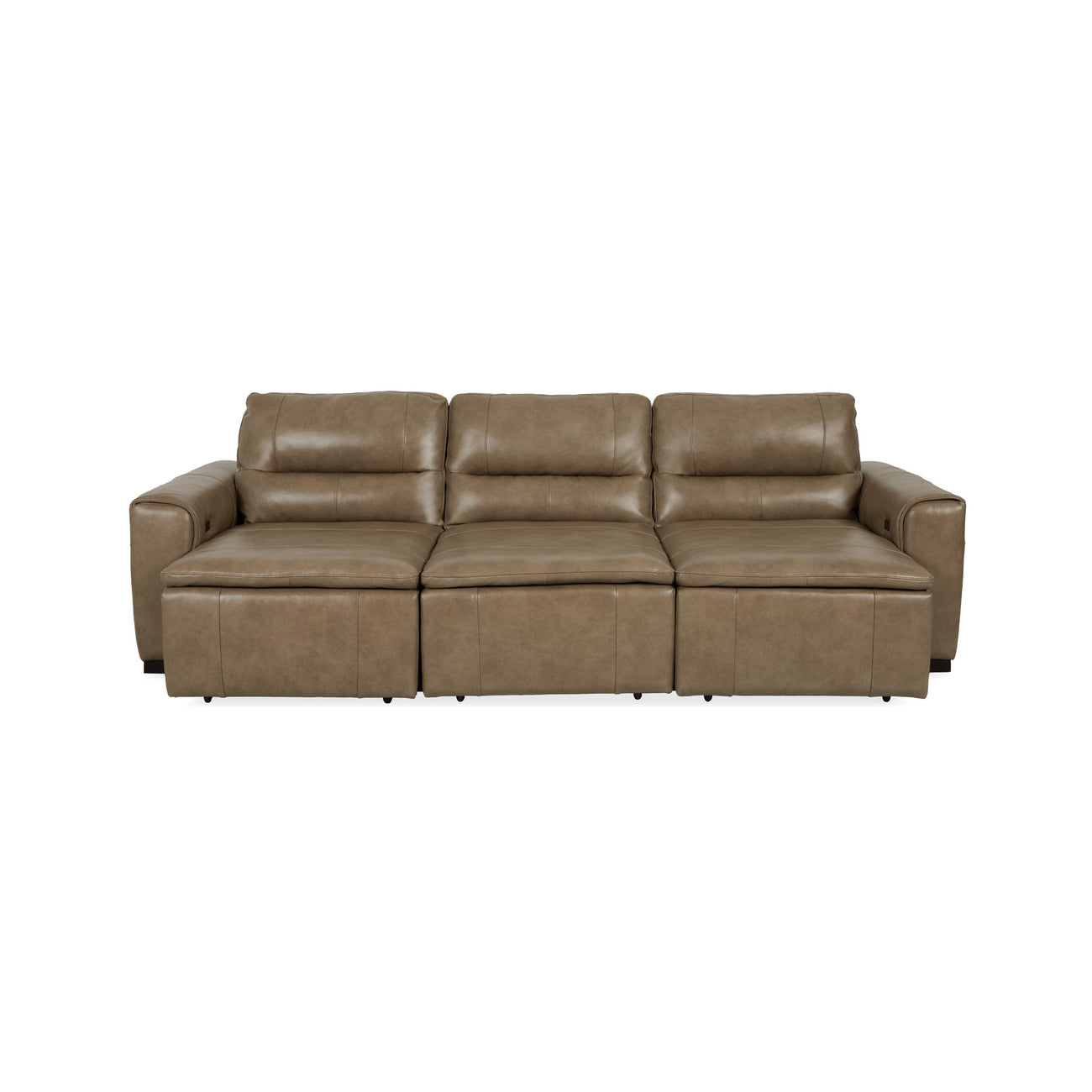 The First of Its Kind A true innovation, Graham is the ultimate in versatility and tailored comfort. The first of its kind to bring intricately customizable power sliding seats to the market, this collection is luxury reengineered. With the Graham Power Sliding Sectional, you can select from four modular components to build your own unique piece to fit any space. Each seat has an adjustable depth that you can control with a power button. For the pinnacle of customizable comfort, look no further than Graham. •Choose from four modular components to build a configuration that fits your room •Transitional style with a wide, pad-over track arm and ultra-wide and deep seats •Adjust the depth of each seat with a power button that slides it in and out of the base •Built to last with Flexsteel’s patented Blue Steel Spring seat system, providing unmatched support and durability •Seat cushion toppers and headrests contain CloudLux, a hypoallergenic down alternative fill that provides luxurious loft and comfort •The console component includes a storage compartment, wireless charging tray, USB-A & C charging ports, and pop-out dual cupholders •The power control on each arm unit includes USB-A and USB-C ports for convenient device charging •Dark walnut stained wood legs •Upholstered in a cool, river tan top-grain, semi-aniline leather that is durable for everyday use
