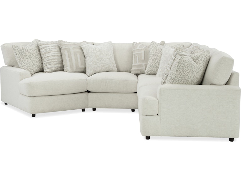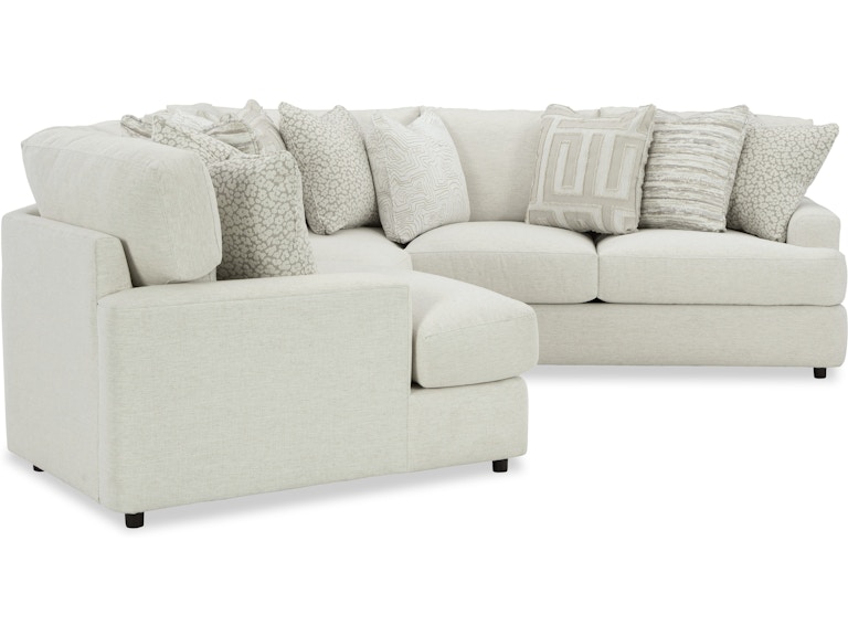 This cozy soft sectional from the Paula Deen Home collection checks all the boxes. Deep seated and comfortable, it features rounded track arms and rounded corners at the base for a sculpted and modern look. French seamed overall, loose back pillows, Paula’s exclusvie Down-Blend seat cushions, and Down-Blend toss pillows are standard. Build your own configuration to suit your space with 11 pieces. Also available are the matching sofa, loveseat, chair 1/2,and ottoman.