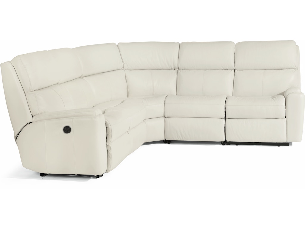 Gather everyone together for a comfortable night in with the Rio Power Reclining Sectional, available in our premium leather upholstery. Using the power controls in either arm, everyone can prop up their feet to lay back to relax. USB charging ports in the power controls give you a place to charge devices, while remotes and beverages can be kept handy in a convenient storage console. Design details including divided back cushions support your neck, back and lower lumbar, while inset padded armrests take pressure off your forearms. Durability is never an issue thanks to our patented Flexsteel DualFlex Spring Systemâ„¢, which provides flexibility and firmness as you sit. Choose from over 50 premium leather options to create a look that complements your living space.