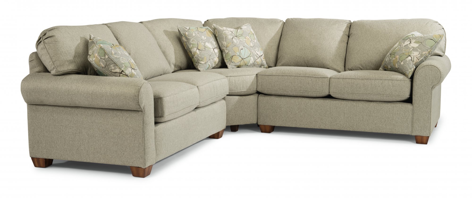 Smooth edges, rolled arms, and exposed block legs give Thornton classic appeal as a living-area staple. Welt cording trims the back and seat cushions for a finishing touch. With multiple seating options, this roomy sectional takes the spotlight in large living spaces.