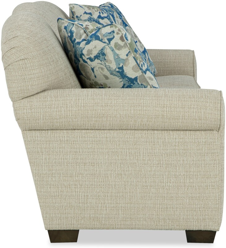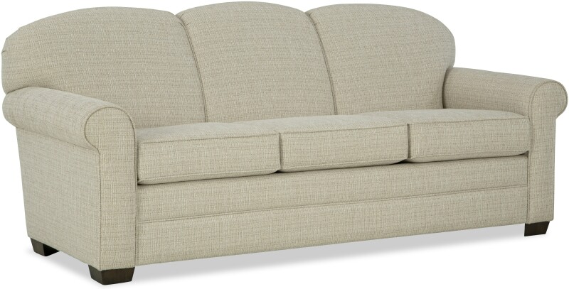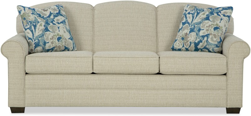 Classic styling and a beautifully shaped back rail make this sleeper sofa a familiar favorite with our customers. It features a tight back for easy maintenance, softly rolled sock arms, and low block feet. Standard with two toss pillows. Also available are the matching sofa, loveseat, chair, and ottoman.