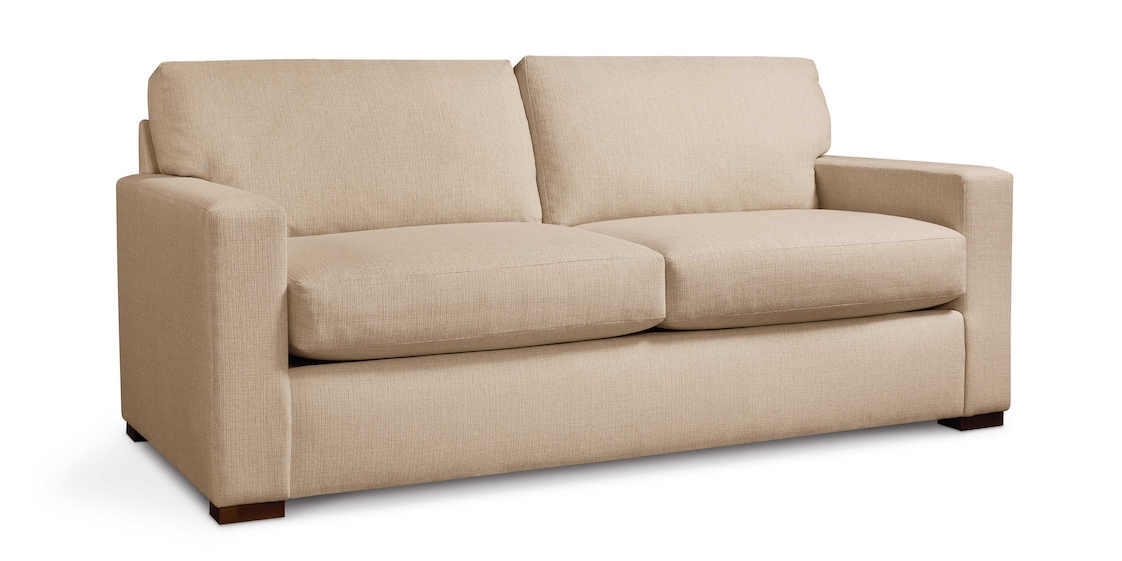 Easygoing transitional style makes the 2/2 Anson Sofa the centerpiece of your room. Soft, attached boxed back cushions and top-stitched seat cushions beckon family and guests to have a seat. Low block legs with Brindle finish complement the fabric options. Choose from Canvas, Sisal, or Chrome Revolution fabric.