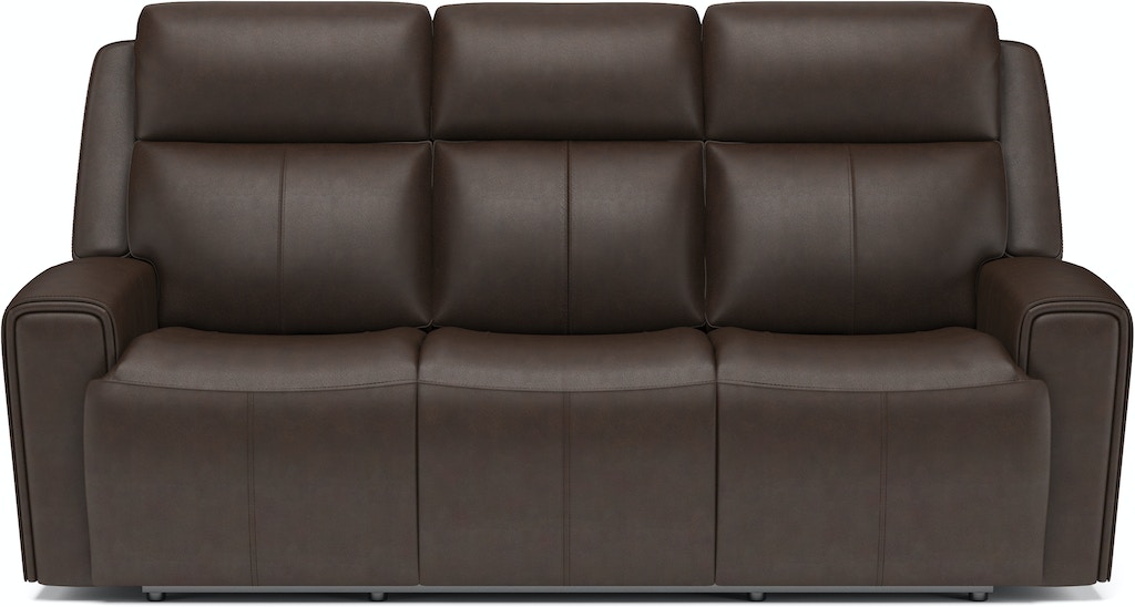 Make your living room the place to be with the comfortable and spacious Barnett power reclining sofa with power headrests and power lumbar. The whole family can relax together and enjoy a feeling of weightlessness with the loveseat’s Zero Gravity recline technology. Easy-to-access power controls on both sides of the sofa allow sitters to independently adjust the recline, headrests and lumbar to find the right level of support for their bodies and moods. Conveniently charge devices without ever needing to get up with a USB port in the power control, and keep remotes close by with handy side pockets. Enjoy ergonomic design details, including generously scaled, contoured seats and waterfall chaise pads that take pressure off the legs and back. Wide track arms with durable top-stitching and attractive welt trim will make this reclining sofa a stylish centerpiece in your home. Upholstered in our premium top-grain leather, this sofa will look good for years to come.