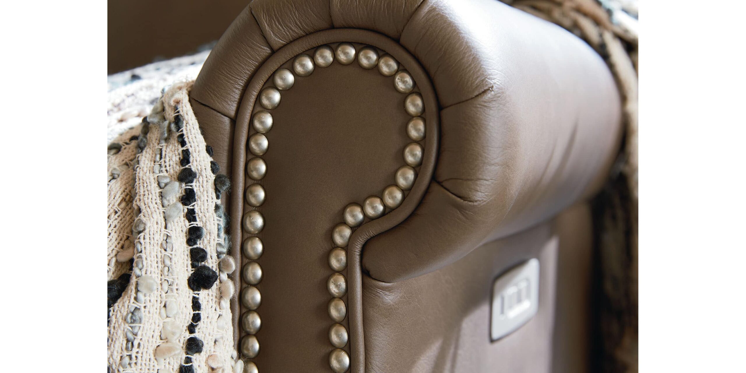 Say goodbye to ordinary recliners. This BenchMade Motion sofa is designed and engineered to be ingenious, but to look and feel like it’s stationary upholstery. With superior cushioning and coil springs seat support, you can relax and recline with a powered headrest. Buy now or customize it just the way you’d like it with your choice of arms (sock, panel, flair, setback or slope), semi-attached cushion back (boxed edge, knife edge or bed pillow), removable legs (turned, tapered or metal), arm caps, seat cushion fill, nailhead trim – even Bluetooth is an option. Choose from over 40 leathers. Made in the USA.