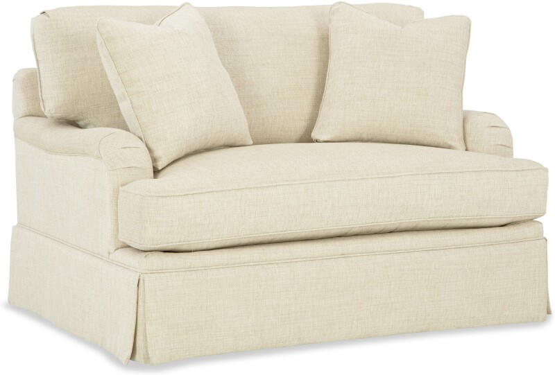 The C9 Series is a custom order program that allows you to select from 6 arms, 4 backs, 5 base styles, 19 finishes, and 31 pieces to create a look all your own. The program includes sofas, sectionals, sleepers, loveseats, chairs, and ottomans. For more information, go to the home page and click on Design Options and select C9. This oversized chair hides a twin-sized, memory-foam sleeper with adjustable headrest. (Also available with standard mattress). Two toss pillows included. Also available, matching storage ottoman to hold bedding and pillows, style 00S.