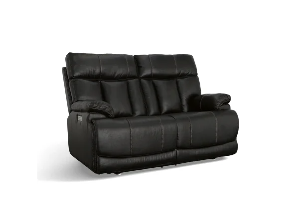 Treat yourself to superior comfort with the Clive Power Reclining Sofa with Power Headrest and Lumbar. Lofty and eye-catching with its heavy thread stitching and a channeled back cushions, this clove brown fabric sofa delivers premium in comfort with pillow pad arms, a high-density seat cushions, and extended footrests to accommodate taller users. The power button allows you to independently adjust the headrest, footrest and lumbar support on each end seat. Lay-flat recline allows you to recline back and stretch out for a snooze. And with Flexsteel’s patented Blue Steel Spring™ seat system at the heart of each seat, this sofa is built for lasting, everyday use.