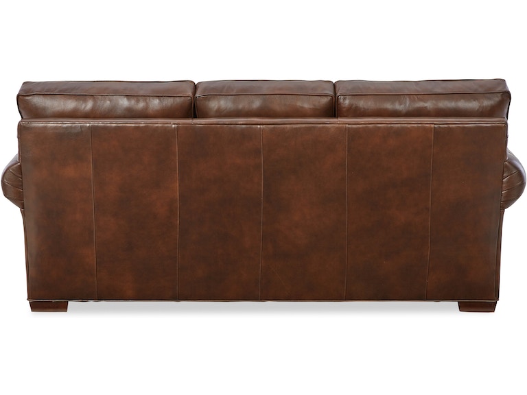 Casual, livable comfort is what this gorgeous leather sofa is all about. It features large, comfy rolled arms with an extended panel on the front, accented by beautiful nail head trim. Low block legs sit below the matching nail head trim on the base. Semi- attached box border backs, Blend Down coil seat cushions. Also available are the matching loveseat, chair 1/2, and ottoman. Optional nail finishes available.
